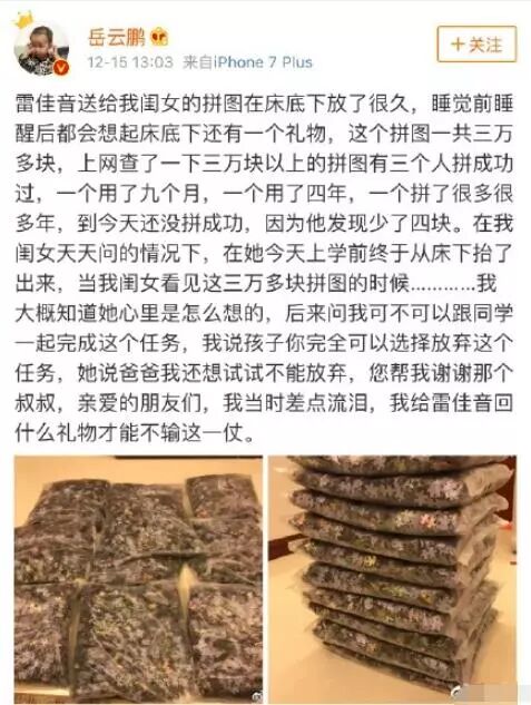 而且这幅拼图迄今为止就只有三个人完成了,一个人用了九个月,一个人用了四年,还有一个人拼了很多年因为少了四块!气得岳云鹏都发长微博跪求网友了!