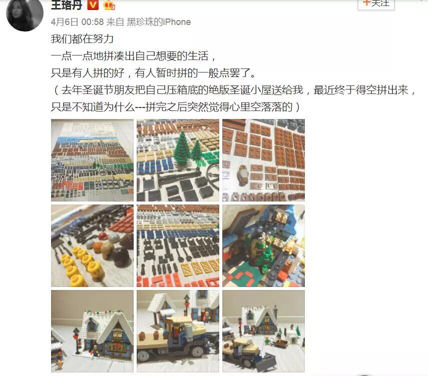 像王珞丹这样将自己宝贵的休息时间大把大把的投入到乐高®,还是值得的,因为对她来说这是一种生活方式。有人拼的好,也有人拼的一般,好与不好都在努力,都是自己想要的生活,这就够了。