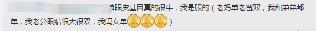 好了,今天的基因PK小擂台就到这里,双眼皮妈妈队落后的两分,就看看各位能否在评论区扳回咯~