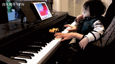 宝贝,看,它立即就显示了你要弹的第一个键。
