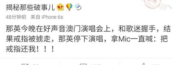 所以,如果演唱会的戒指是那英自己的,你觉得她会如粉丝所说的那样,顺便送给歌迷吗?
