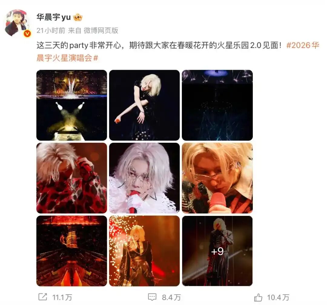此前在接受《中国日报》专访时,华晨宇谈到专程从海外赶来看演唱会的歌迷,他表示,火星演唱会的极致现场难在海外复刻,若真心喜爱,欢迎“回家”亲历最原汁原味的极致体验。