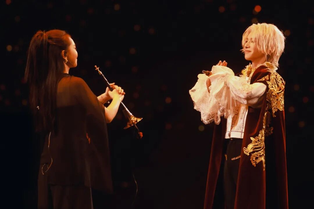 本轮演出中,他以“中西乐融合”为核心,凭借扎实的唱功与精妙的编曲,让古筝、箫、唢呐等传统乐器古韵与竖琴、爱尔兰哨笛、班卓琴等西方乐器碰撞融合,赋予《忒修斯的船》《风之海》《降临》等作品全新生命力。东方音乐的温婉与西方音乐的张力碰撞出独特火花,生动诠释了“中西音乐华山论剑”的独特韵味,彰显其全能音乐实力。这一站也是中西乐编曲的最后一次演绎。