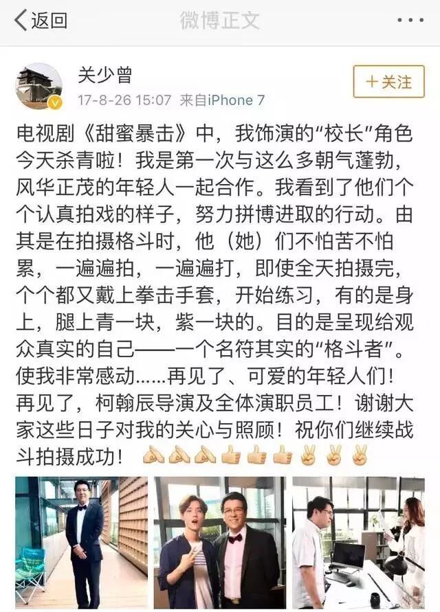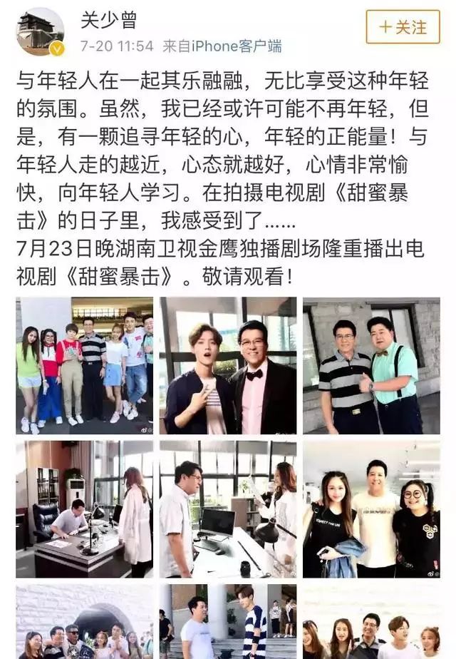 杀青宴的视频里,关爸爸搂着两个年轻人,笑容洋溢地说道:“很开心和一群年轻人合作。”(关爸爸是不是在片场也被秀了一脸恩爱?)