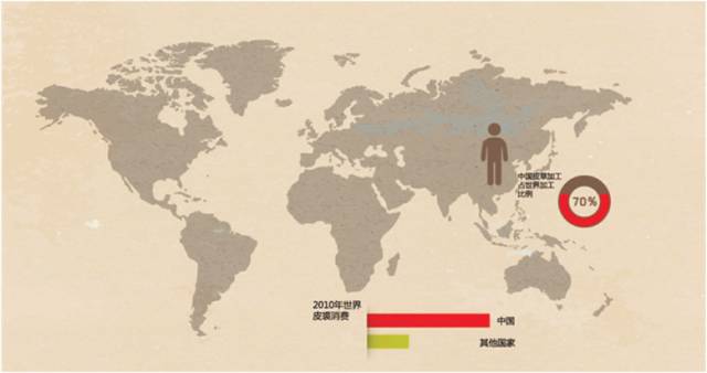 根据国际毛皮协会的数据:全球约有70%~80%的皮草都在中国生产加工。