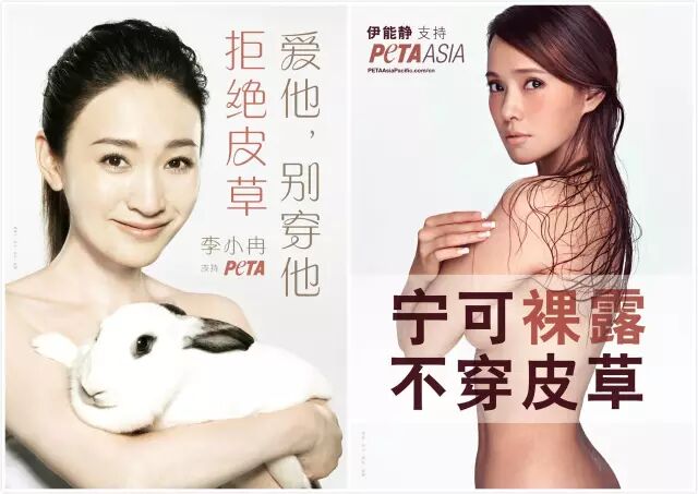 李小冉和伊能静为PETA拍摄的反皮草公益海报