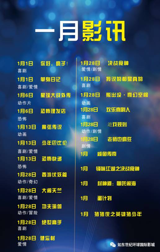 2017年已经到来了,1月份向来都是大片云集的季节,那么新年新的开始会有什么新的影片上映呢?闲话不多,马上去片!