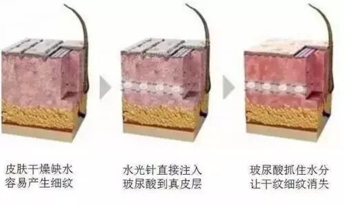 而水光针可以缓解这一难题,因为我们的皮肤会因为各种各样的因素锁不住水,尤其在干燥的冬天会因为天气和气温加速水分流失,而水光针注射到皮肤里后,里面的玻尿酸可以抓住水分,延缓水分流失的速度,水分充足,自然干纹、细纹会变淡,毛孔也会跟着变小,皮肤也会变细腻。