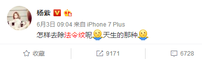 其实法令纹的问题,杨紫早已察觉,今年6月还在微博上求助大家有没有祛除的好方法,并且说自己是天生的。