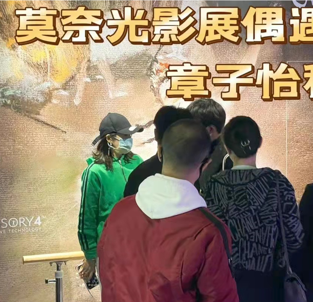 虽然今年章子怡已经40多岁了,但是在色彩搭配这一块依旧非常的大胆,这次看画展,他就选择了非常有冲击力的绿色连帽卫衣来作为主要单品进行搭配。