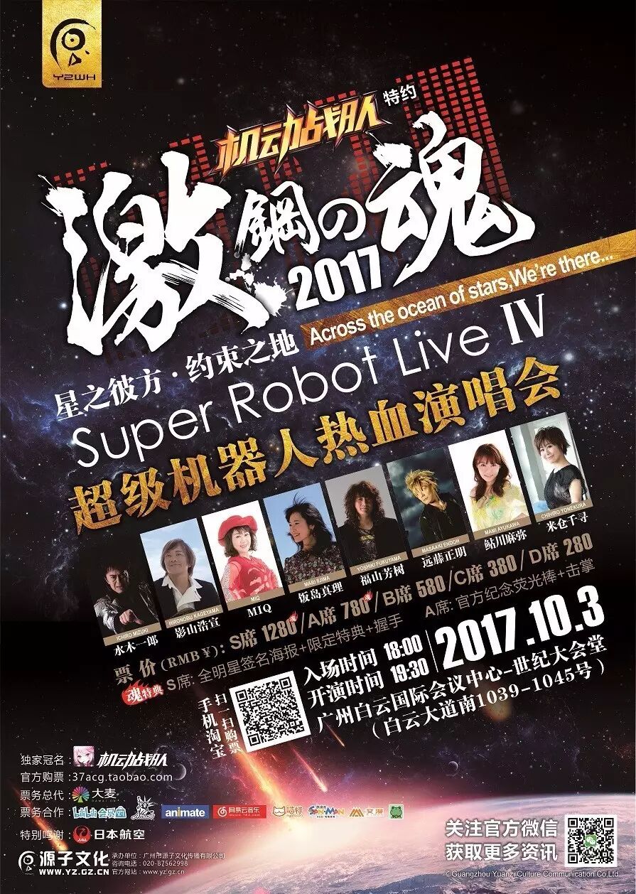 2017激•钢之魂超级机器人热血演唱会于10月3日在广州白云会议中心世纪大会堂举行。各大售票渠道现正火热售票中,麽多app更有限量独家特惠票哦,赶快扫描文章下方二维码下载吧。