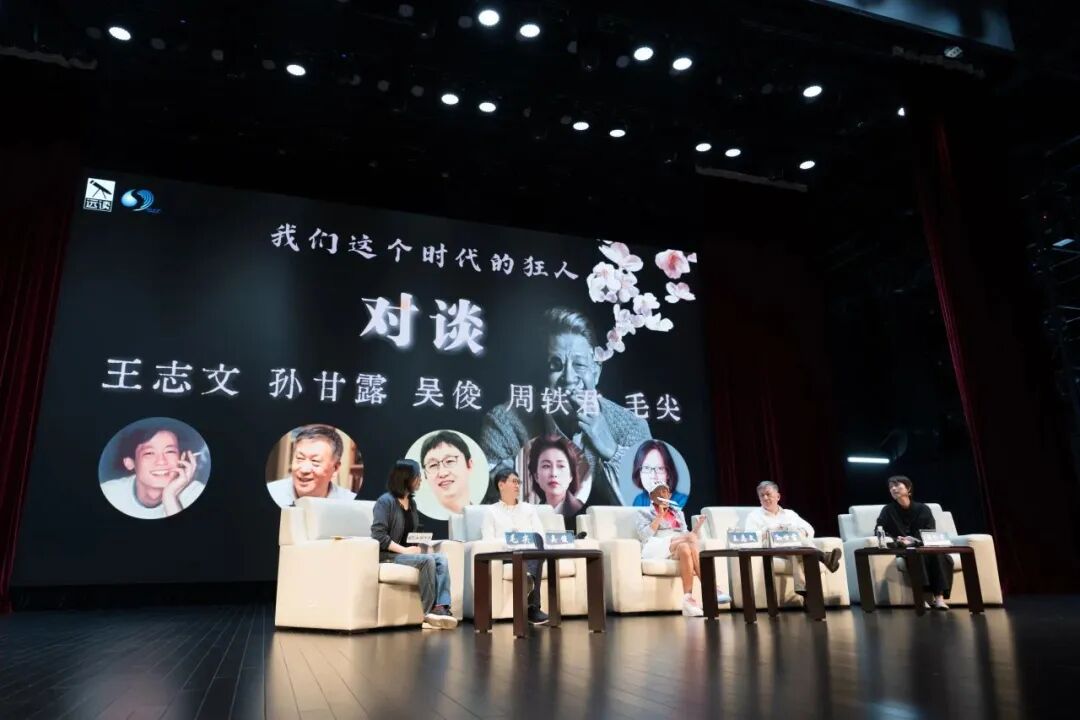 吴俊:大家上网去查,去年疫情封控期间,我写过一篇文章讲“毛尖就是鲁迅”,当时还没有想到王老师演的鲁迅。今天说到这个话题,我扯开几句,其实除了我以外,我左右的四位,都是各个领域杰出的大家。刚才毛老师我已经介绍过,她是女版鲁迅。最左面的周老师,在我眼里是跟毛尖老师一样伟大的女性,她学阿拉伯语出身,而且长期在可以称之为“前线”的地方做媒体工作,我这次来之前,因为不认识周老师,把每个人都做了功课,对周老师特别佩服,现在做纪录片。孙甘露老师,我还没来得及向他祝贺,因为他今天很不守纪律,迟到了,三四天前,他刚刚获得了中国的最高文学奖茅盾文学奖。所以话回来说到王志文老师,王志文老师演戏非常精彩,而且是中国第一流的演员,我看到网上有文章说王老师是莎士比亚式的演员。后来我就看了一下王老师所有的演艺经历,体会莎士比亚概念,因为莎士比亚戏剧是人类戏剧巅峰的一种标志。而且尤其在悲剧跟喜剧这两个截然相反的风格上,它其实是对人间生活世界表现得极其充分的,而且非常经典化、极致化。除了刚才毛老师提到的鲁迅以外,王老师大概演了差不多超过一百部影视剧了,大概创造了所有的人物,结合刚刚其他老师说到的他的情史,所以我就突然结合王老师的情史,刚才我们第一位老师说到他的情史,我得到的第一个结论,他是像鲁迅一样能够出现在女性梦中的一个男人。