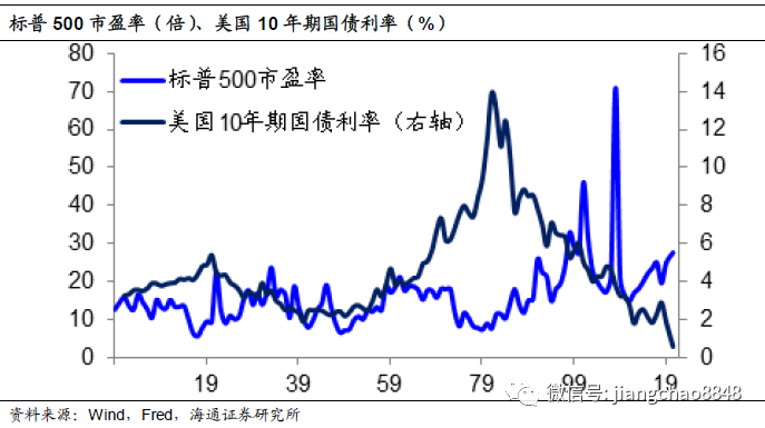 而从利率水平的角度,可以解释为何中国股市的估值相对较低,因为我们的10年期国债利率还在3%左右,远高于美国的0.59%。