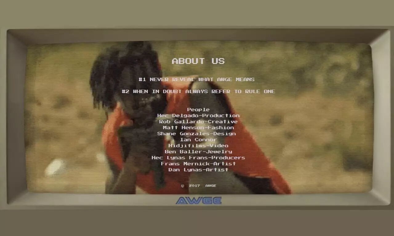 网站内除了有团体相关的照片、视频以外,还开设了线上商店贩售周边产品,虽然架上仅有几款印有 AWGE 字样的 T-Shirt 和卡车帽,但我们仿佛看到了 VLONE 刚推出时的样子——作为 A$AP Mob 团队的周边设计进入大众视野,同样也从只有几件单品开始,然后一步步发展壮大,才奠定了现在的超高知名度潮牌地位。