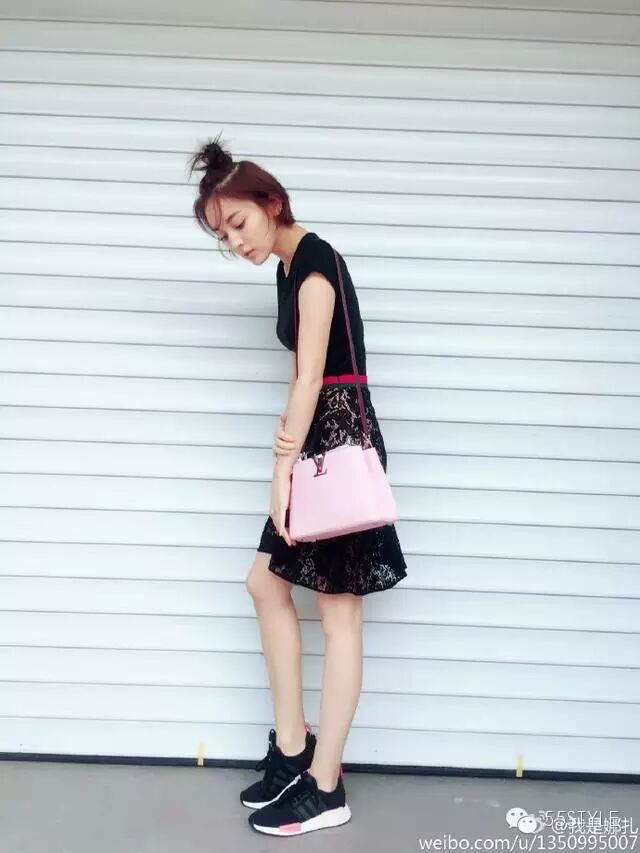 娜扎和张翰这对小情侣的公开也是炸开娱乐圈,其实娜扎属于比较低调的人,这不穿上了已被炒到5000元一双的Adidas NMD,拍图“拉仇恨”,背LV粉色包袋搭配黑色蕾丝裙甜美可爱。
