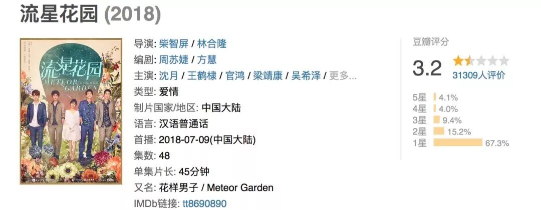 流星花园,豆瓣评分3.2分。