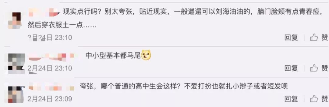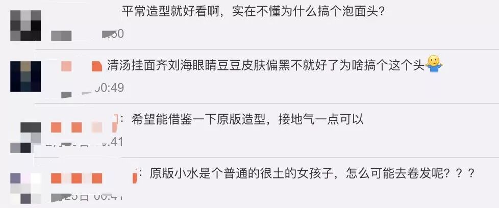 但是网友并不买账,认为赵今麦的发型不符合实际。高中生留这种泡面头,学校是不会允许的。还有网友觉得原版的小水只是土而已,并不雷人,造型太毁经典了。