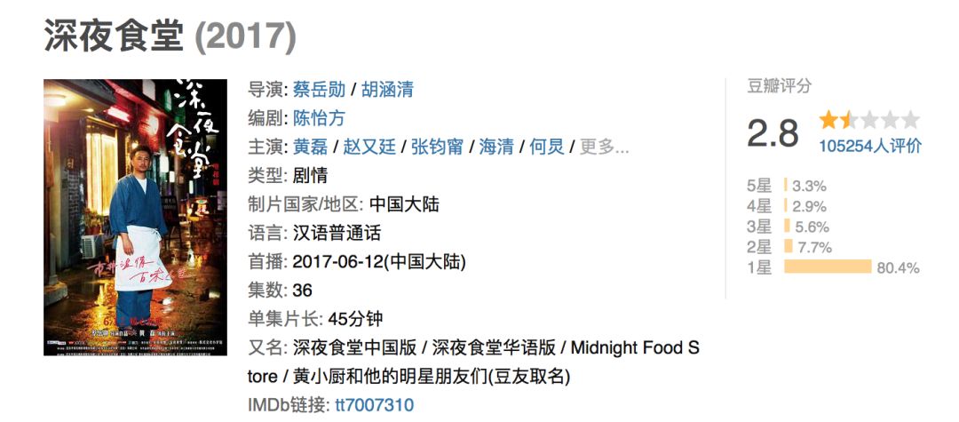 深夜食堂,豆瓣评分2.8分。