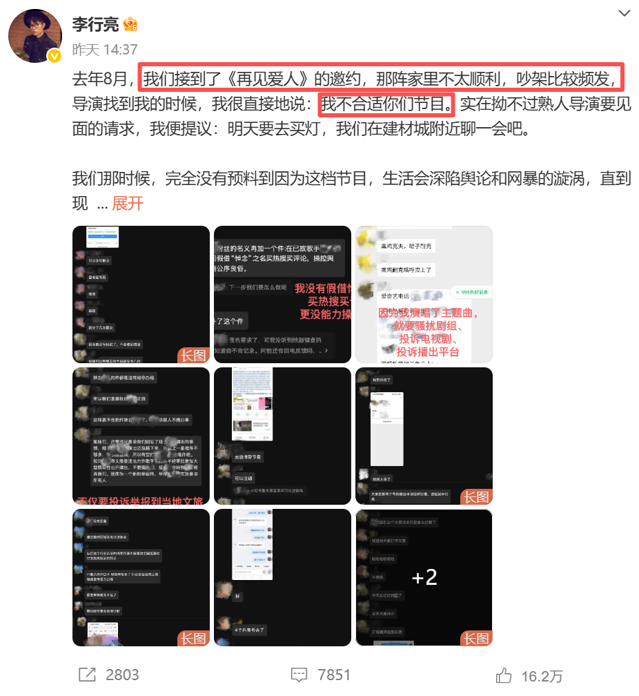 李行亮,发1580字微博长文。