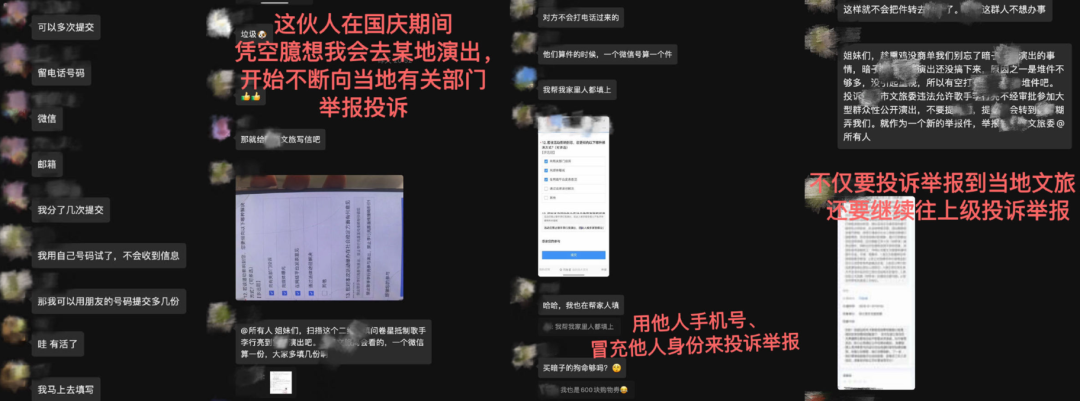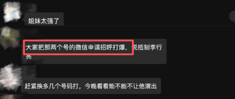 李行亮晒出的举报截图里,合作的剧组、平台全被骚扰。