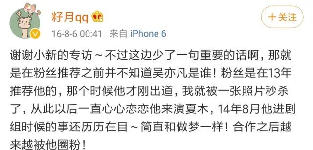 毕竟,《夏有乔木》作者在2013年看见吴亦凡一张照片,就一直心心恋恋他来演,并不存在韩庚后来跟吴亦凡撕番。