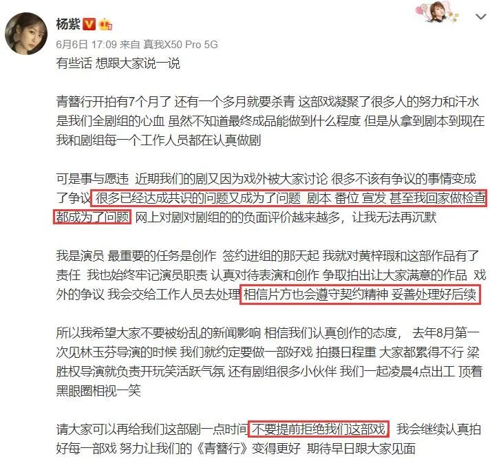 眼看事情越闹越大,杨紫站出来发小作文回应。