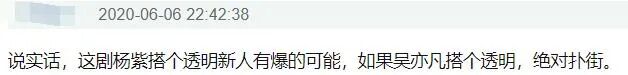 还有网友吐槽,说这剧杨紫搭个小萌新,也可能新人会爆,但吴亦凡搭个小透明,绝对会扑街——毕竟吴亦凡的演技,跟baby也不相上下啊。