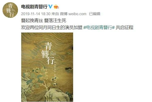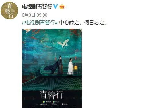而前几天《青簪行》官博po了一张男女主的人物海报。