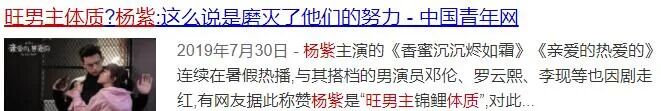 网上关于杨紫旺男主体质,也是铺天盖地的宣传。
