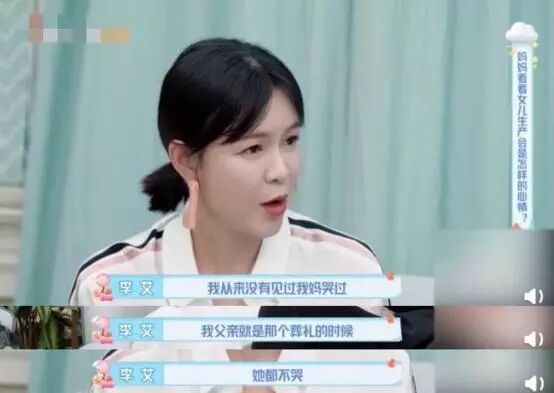 节目中,李艾与丈夫一起回顾生产过程,产前的阵痛场面令人揪心。李艾70岁的老母亲在产房外焦急又担心,听到女儿在房间里难受的声音,急得直哭。