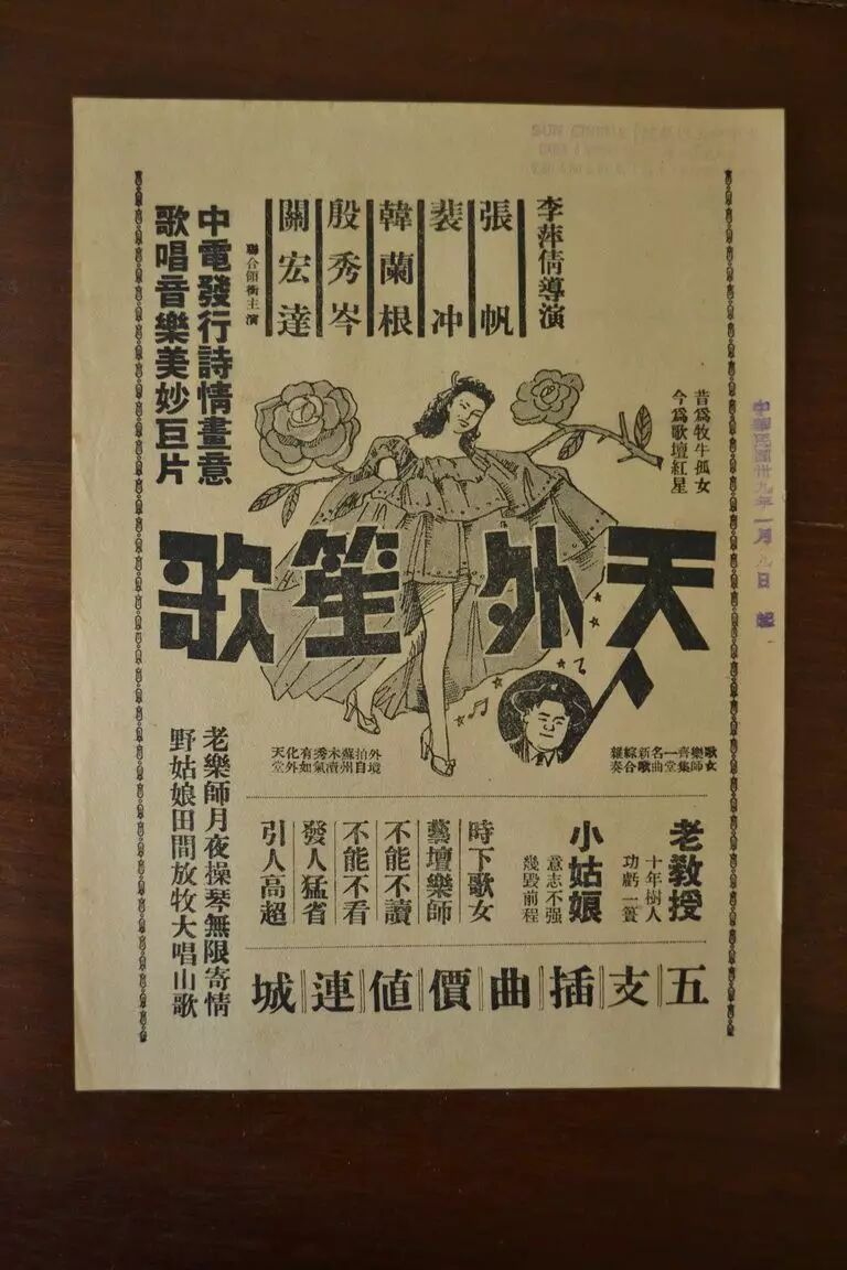 当年还有专门的歌唱片类型,如这部《天外笙歌》,不过我怎么一看「老教授」、「小姑娘」这种配置,内心就升腾出一种莫名的邪恶感呢: