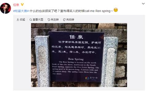 此外,济南也有一个任泉!不过,此任(rèn)泉非彼任(rén)泉,这是一个真正的会喷水的泉。有诗云:“琵琶隔岸潭轻曲,涟涨泉流任自由。”这里的任是自由自在、无拘无束的意思。