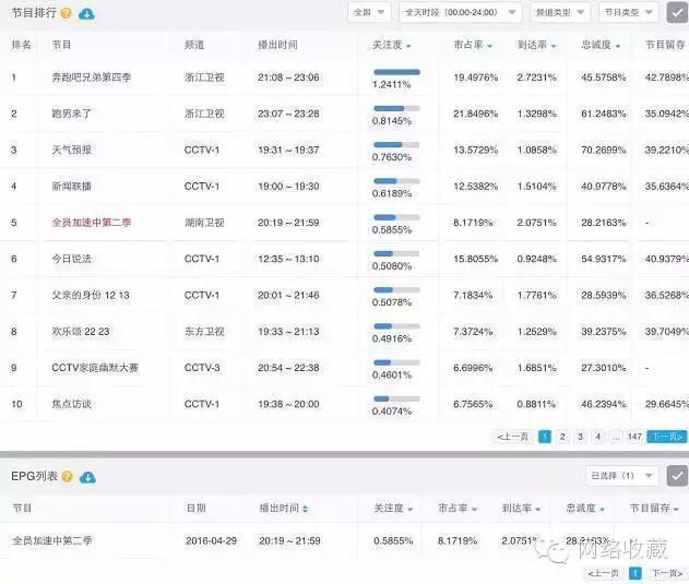 近日,《全员加速中》第二季挪到黄金档回归,全国网收视率2.08%,号称同时段排名第一。不过根据酷云的数据,《全员加速中》平均关注度为0.585%,排名第一的《跑男4》关注度为1.241%,《跑男来了》为0.814%。
