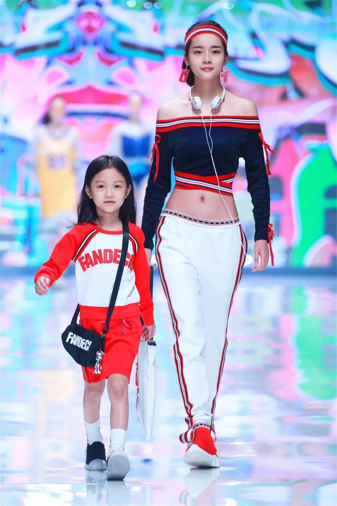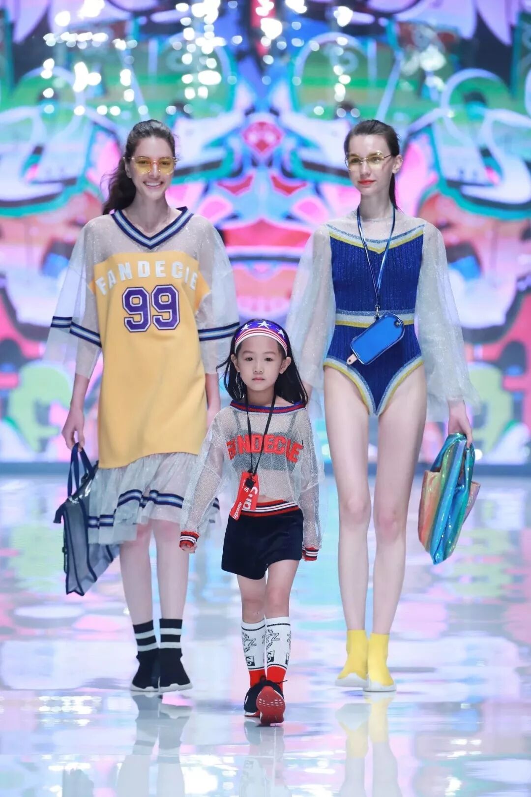 辣妈、萌娃的互动搭配是本章节的亮点,芬狄诗Fandecie和少女品牌LUCIE’S WORLD用相同的色系和元素打造亲子服的默契感和俏皮性,芭比粉、薄荷绿马卡龙色系、透视网格、SLOGAN等元素,突出了运动活力与轻快感,而胸前的99数字则代表了芬狄诗品牌创建于1999年,伴随着芬狄诗女孩从懵懂少女到时尚辣妈的成长蜕变。