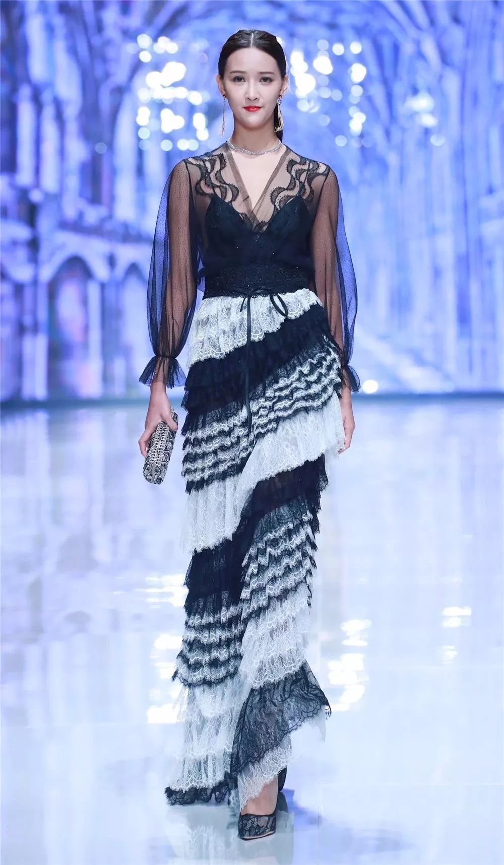 韩雪穿安莉芳秋冬新款蕾丝衫亮相秀场