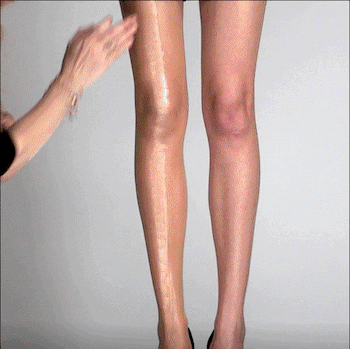 明显对比看出,有高光的腿部就从视觉上看起来修长有光泽,显瘦效果一级棒。