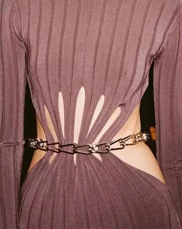还可以在裸漏的设计处搭配一些装饰物,圆环、腰链、宝石、亮片都可以,极大的丰富了腰间的性感。