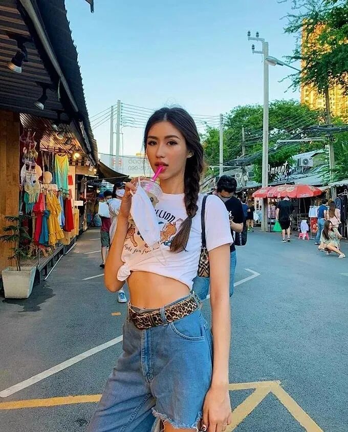 最简单的露腰,一秒变成小腰精,哪怕是普普通通的小t袖,也是扑面而来的阳光性感。