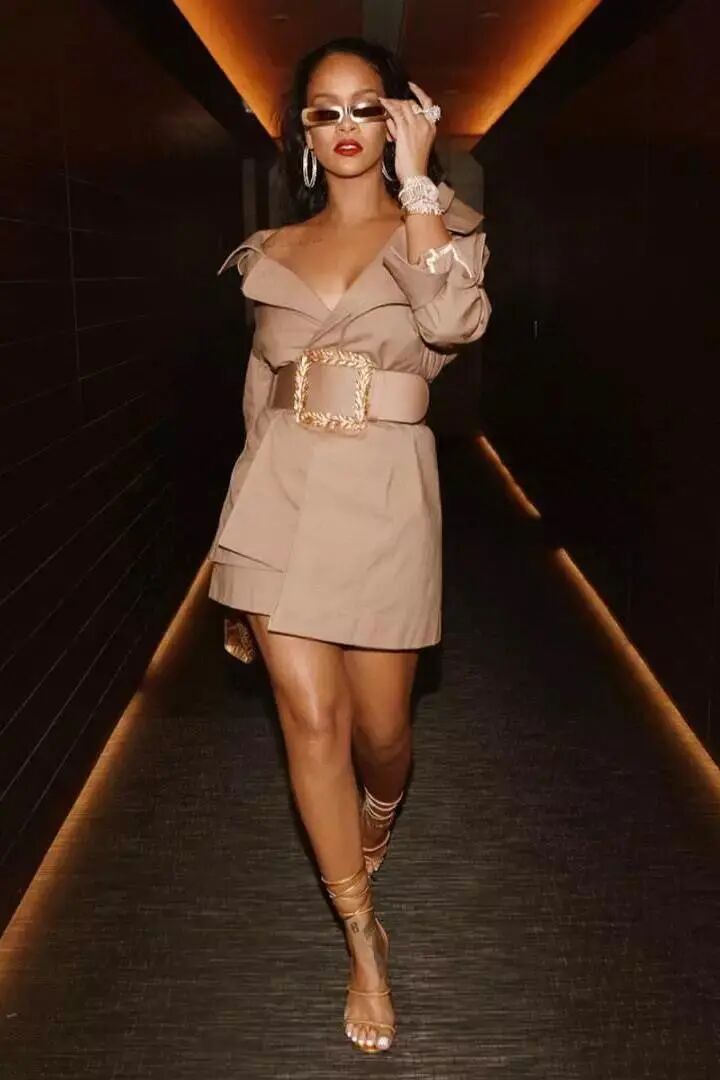 Rihanna就很喜欢穿金带银,参加各种大大小小的活动,都是又大又夸张叮铃哐啷地出席。