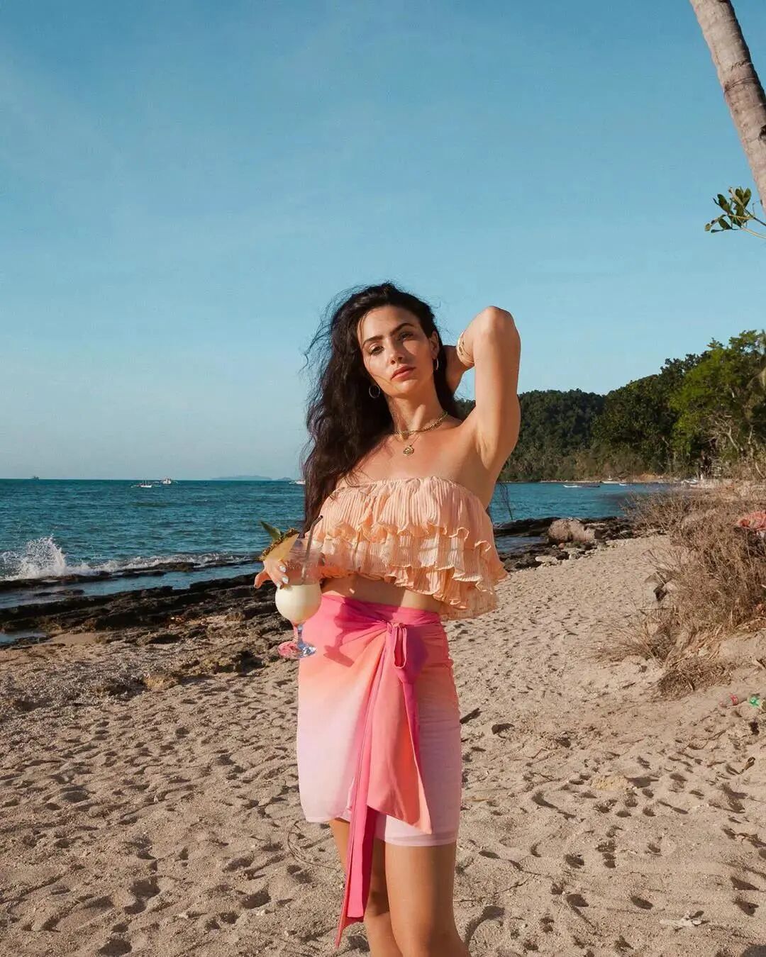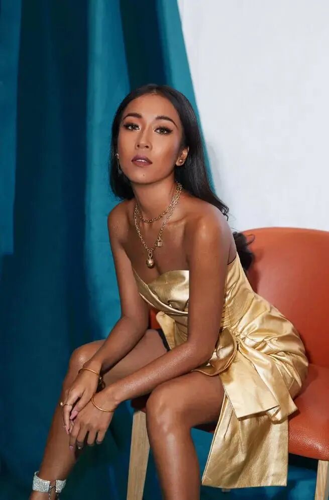 白皮不好驾驭的金色饰品,反而非常能凸显黑黄皮的健康肤色,不经意间流露出健康的性感美。