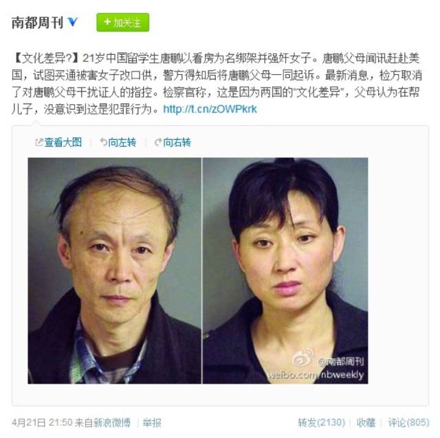 警方随后逮捕了唐鹏的父母,理由是企图贿赂受害人。并被检方以涉嫌威胁证人(witnesstampering)的罪名扣留!