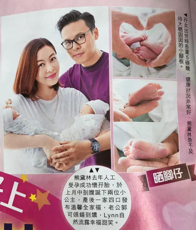 去年,熊黛林通过人工受孕的方式怀上了双胞胎,今年4月24日在香港生下双胞胎女儿。隔天,熊黛林在个人社交网站上晒出了女儿的小脚丫,以及怀抱女儿的照片:“终于等到你们了”。