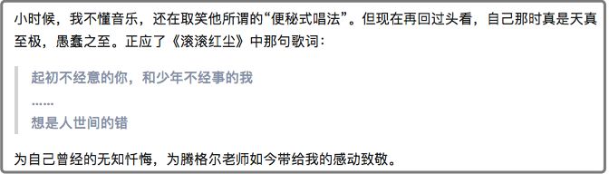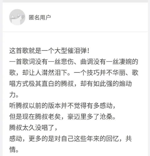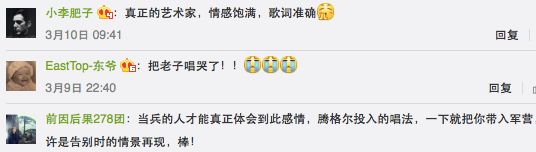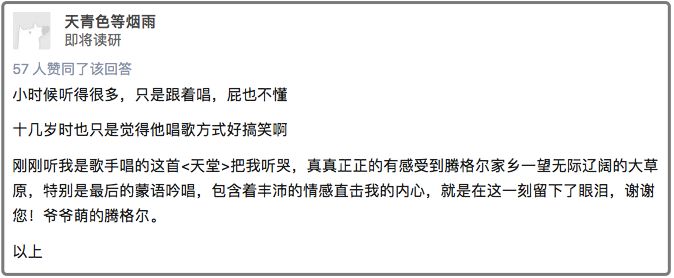 而且,在悄悄抹完眼泪后,又有多少人跟娱妹妹一样,对以前虚妄评价腾格尔的无知感到极度的难为情?