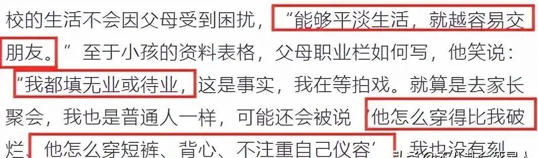 近日,他谈到自己女儿的时候,还透露自己在填家长资料的时候,写自己是“无业”或者“待业”的状态,一方面是因为希望女儿不要受父母职业的影响,一方面他表示自己确实是等戏拍,也就是目前没戏约。