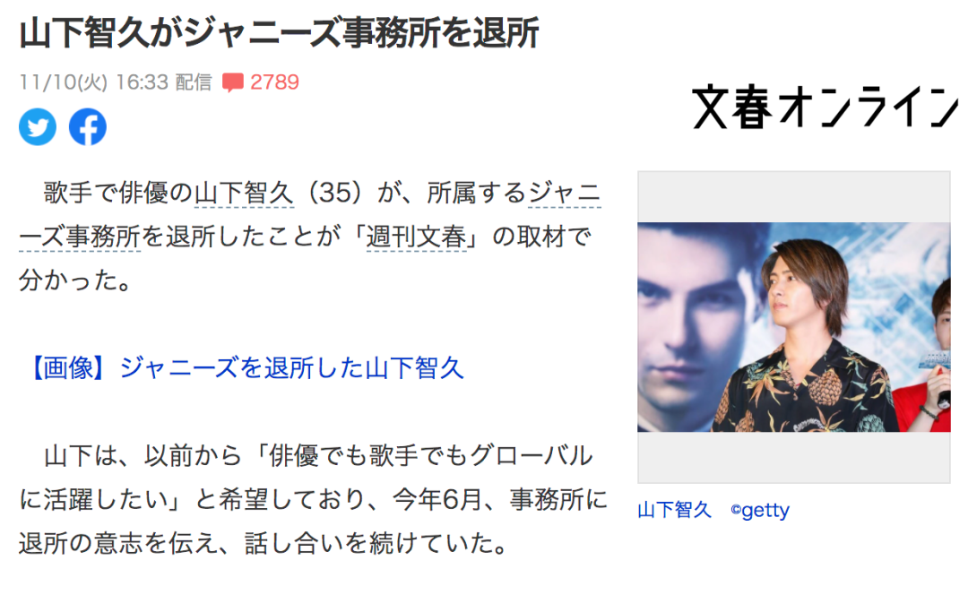 昨天下午,日本文春又爆出重磅消息:山下智久已正式退出杰尼斯!