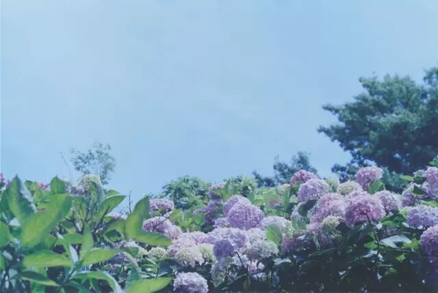 中国人的审美里,更喜欢孤傲的花,又抱团又变色的绣球花,实在不是什么高风亮节。即使有八仙之一的何仙姑加持,也开不出什么境界。是枝裕和的电影《海街日记》看了都两年了,我才注意到,一直觉得有些俗气的绣球花,竟然在是枝裕和的电影语言中,传达出了丰富的意韵。这个淡如流水的故事,就是从六月绣球花开时的一场葬礼开始,最后又在绣球花下的一场葬礼中结束。在电影的官网首页,也是一片绣球的花海。连天空都似乎被这花儿染上了一层淡淡的紫兰色。