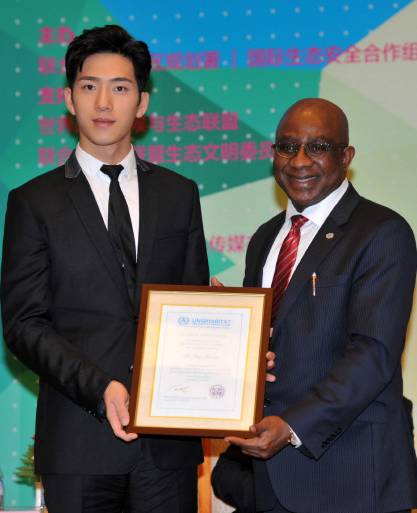 他是青年创新创业奖青年形象大使,这可是联合国人居署全球监测中心主任、联合国青年赋权与城市生态委员会主席班吉·奥伊兰·奥伊卡先生亲自颁奖的!