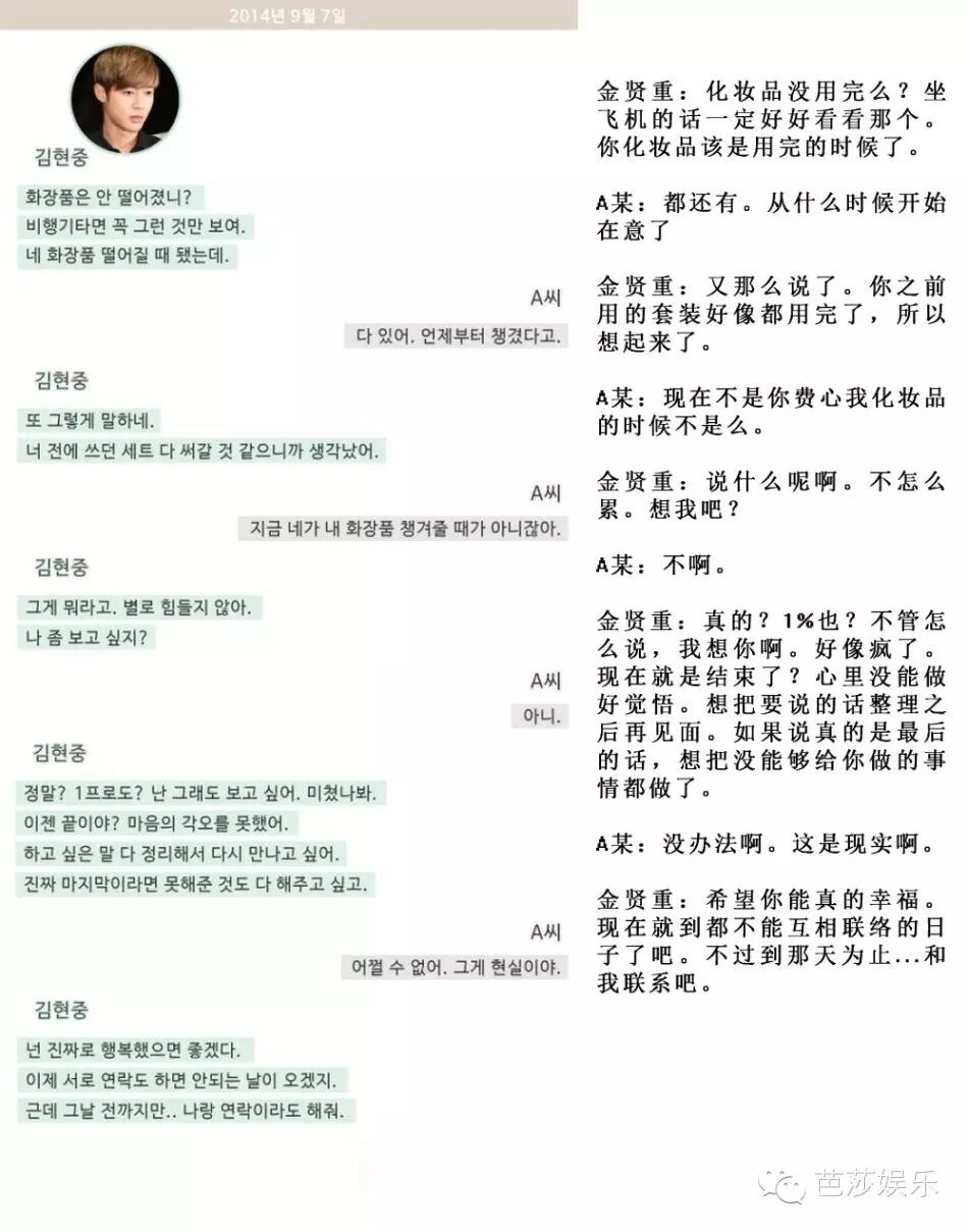 还放出了金贤重在2013年发给她的短信!短信里,金贤重说着“我想你”这种露骨的话