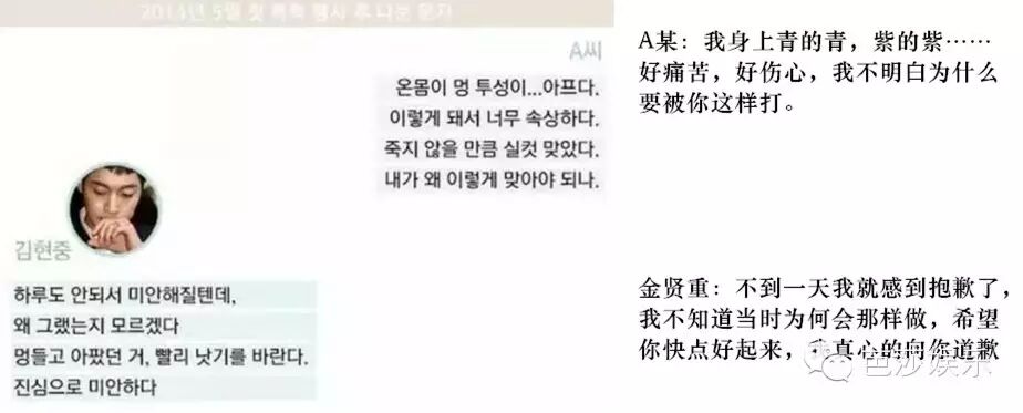 女方在短信里直指金贤重家暴,他则一个劲儿地道歉