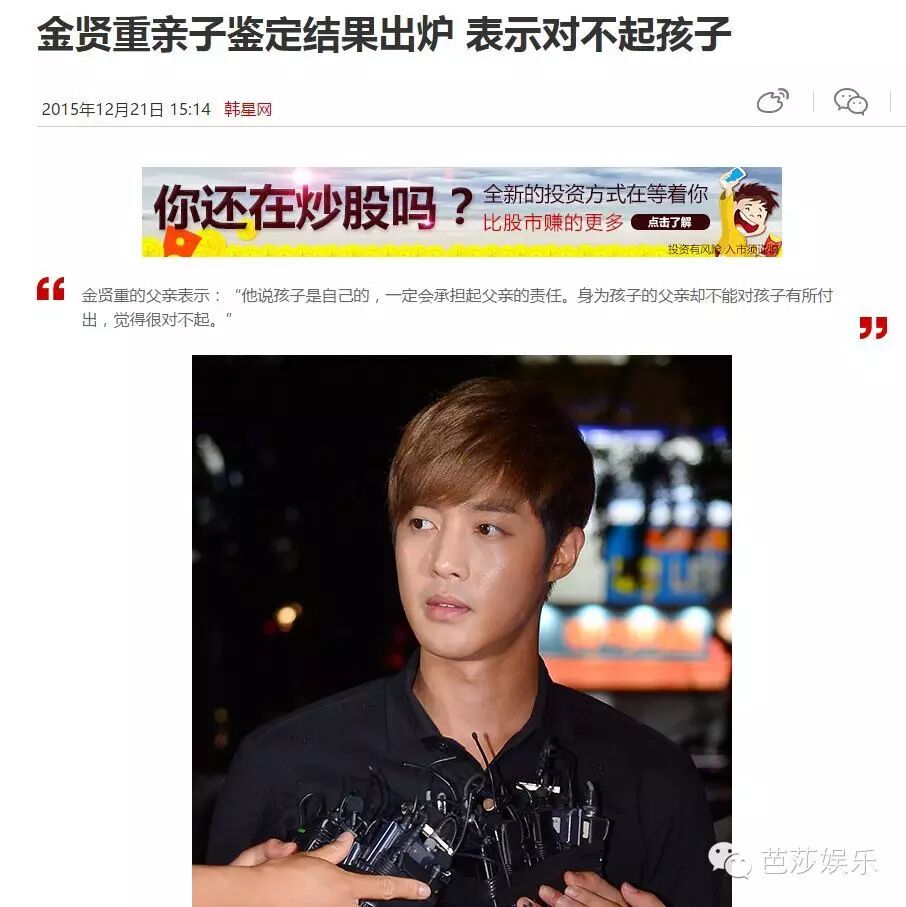 一直闹到12月14号,双方去做了亲子鉴定,金贤重也还咬死不认。直到前天鉴定结果出来,金贤重这才表示,是的,这个孩子是自己的,一定会承担起父亲的责任